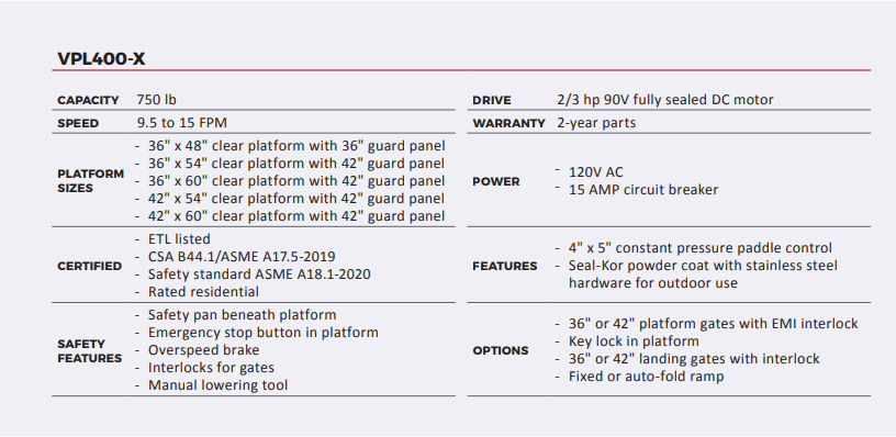Vertical platform lifts bring incredible accessibility to your space without the expensive renovations required of home elevators. This lift can not only dramatically improve your day-to-day life, but make moving furniture, deliveries, and other heavy objects into your space a breeze.